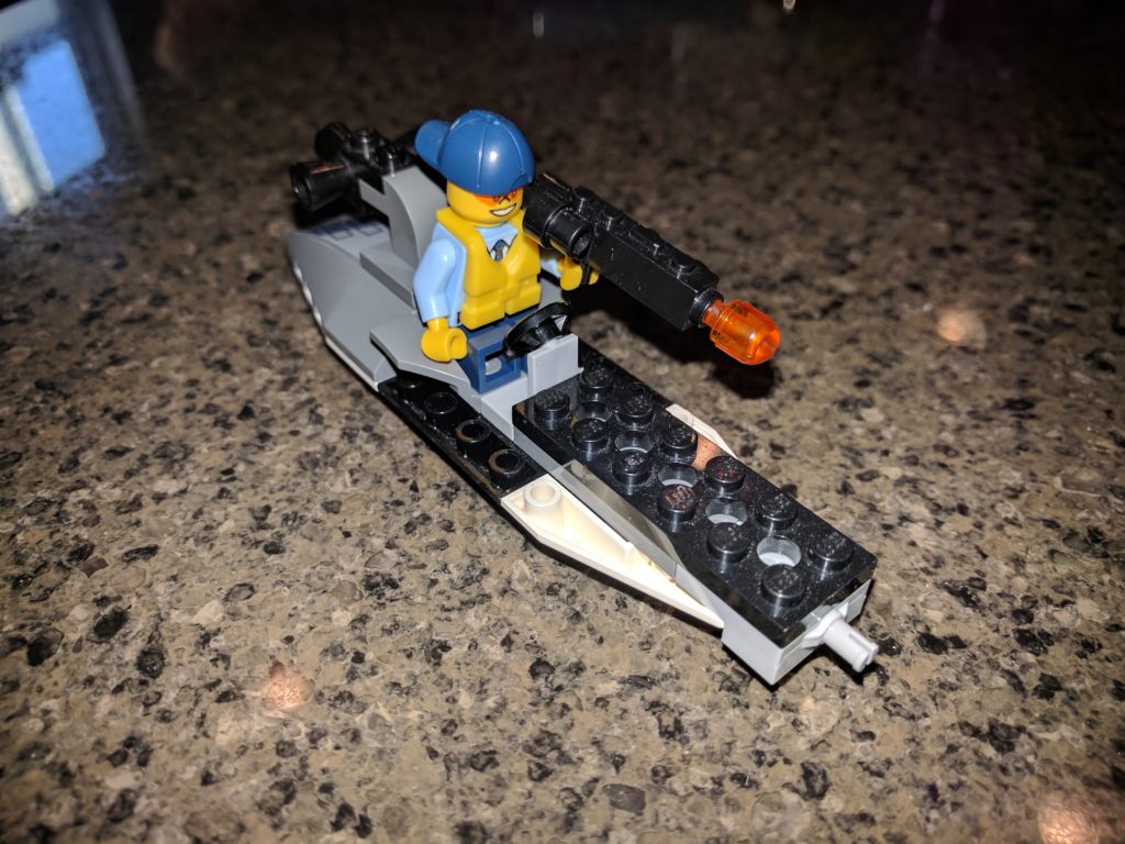 THE mega destroyer is used for chasing robbers on the water. IT has speakers on the back of the mega destroyer for other police to help get whoever there chasing.