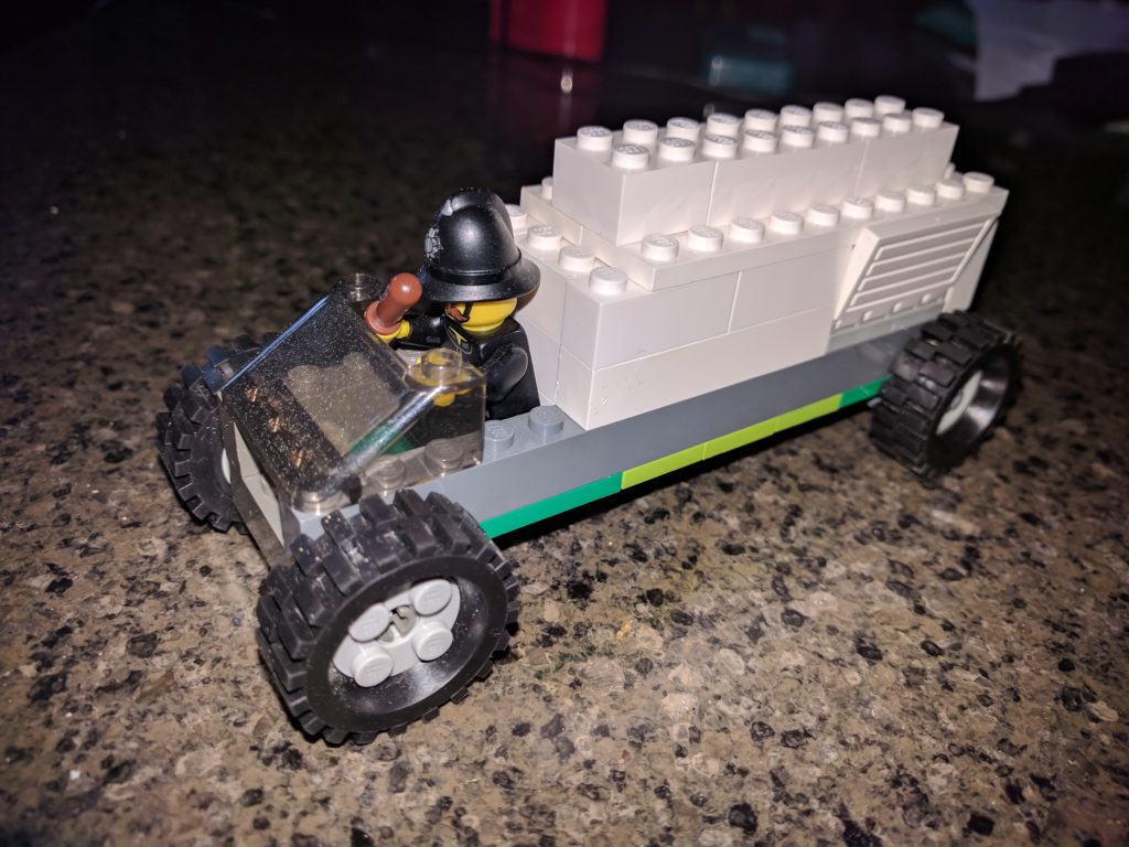 In the cop chaser there are hand cuffs and a gun.It can go faster then a truck,a car,a semi,faster then any vehicle.