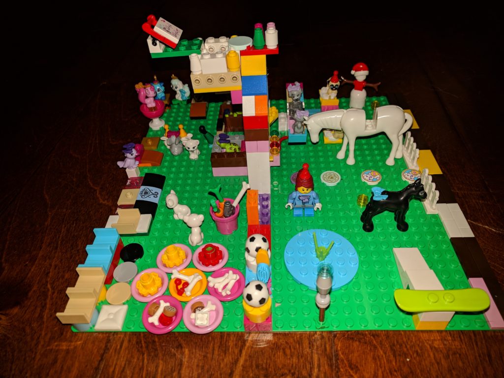 This is Legoland. It has 19 pets. Their namesĀ are Flower, Woofs, Sky, Sky, Bella, Roxie, Fred, Rosie, Tulip, Jazzy, Jazzy, Thumper, The Queen, The King, The Princess is known as ‘Palace’, Hedgie, Squeak, Heidi, and Speckle. Most of them are playing. I took a LOT of time building it.